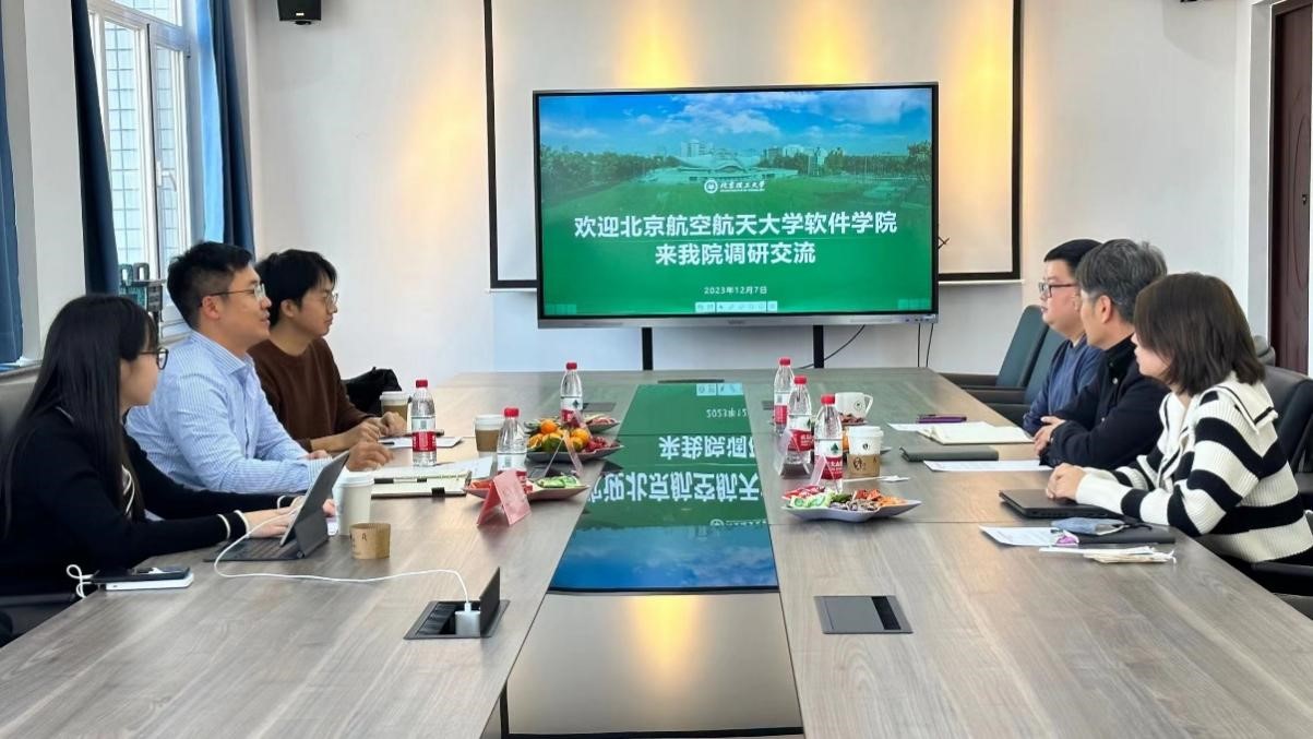 2023年12月7日下午,北京航空航天大学软件学院党委副书记孙铭涛携辅导员队伍一行3人来qm球盟会网站开展调研工作,学院党委副书记、副院长奚英伦,学生辅导员史继筠、陈相进行了接待。双方于中心教学楼1421会议室展开调研座谈。