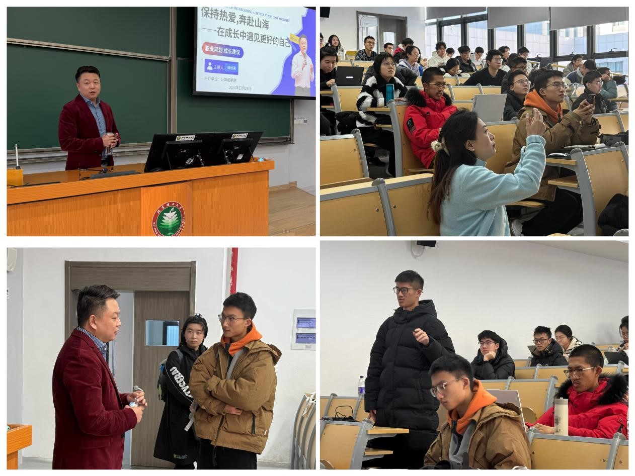 郎佳高为同学们带来了题为“保持热爱 奔赴山海-在成长中遇见更好的自己”报告分享。郎佳高以自己的职业发展路径为例,向学弟学妹分享了个人丰富的职业经历和成长感悟。在谈到成功时,他提到了战略性思维、影响力、组织智慧、冲突管理、全球视野等多个关键因素,鼓励同学们在职业发展中,不仅要注重结果,更要关注过程,不断实现自我成就。