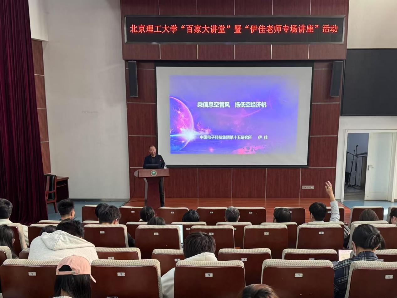讲座开始前,学校为伊佳颁发“北理工百家大讲堂”聘书。讲座中,伊佳结合自身参与的诸多国家级实际案例,从空管知识科普、低空经济解码、前沿趋势展望等方面,剖析低空经济的技术逻辑与时代机遇,还对低空运营智能化升级等方向展开前瞻性畅想,鼓励同学们以专业知识为基础,在新兴领域寻找个人价值与社会需求的结合点。
