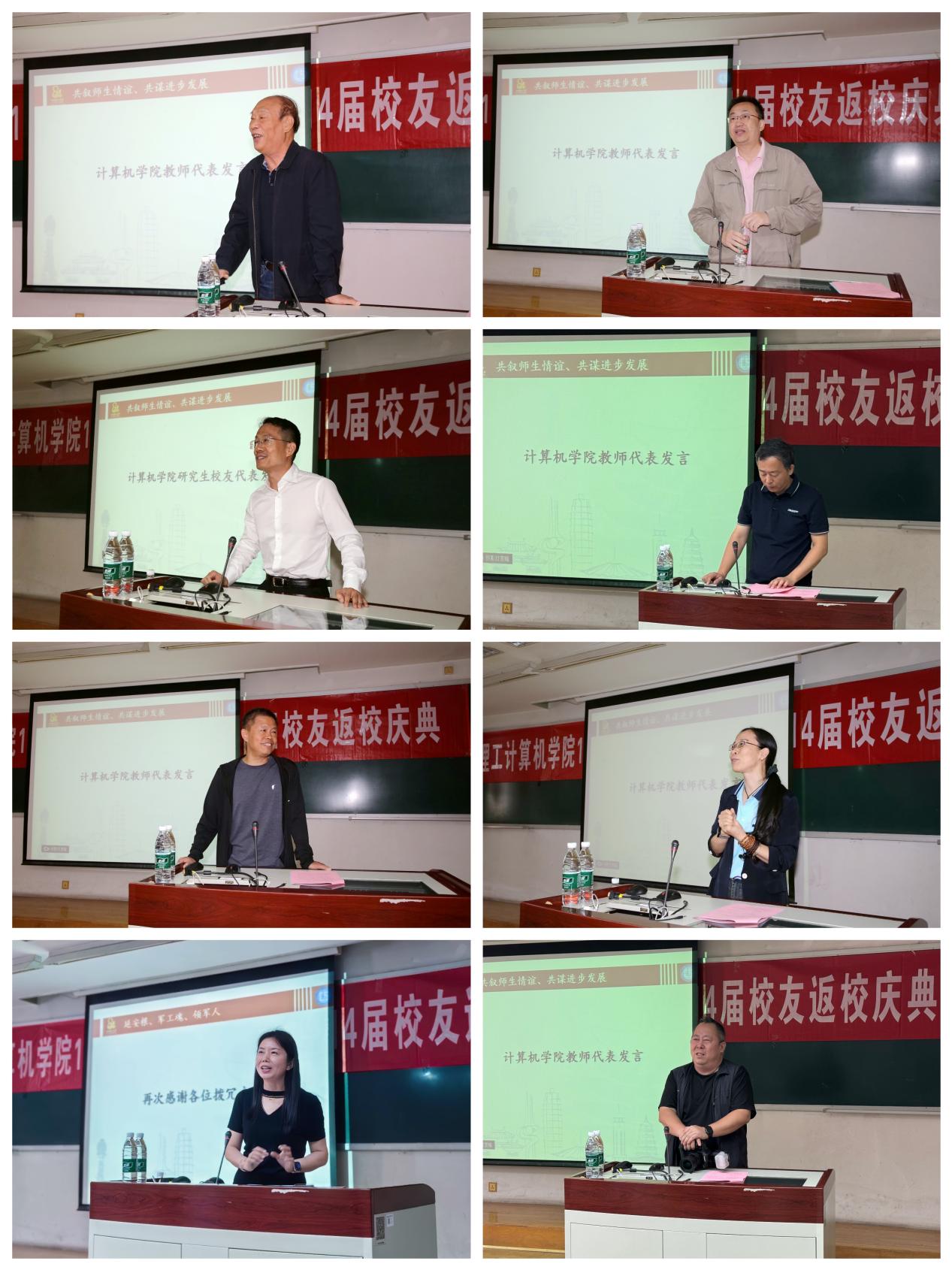 薛静锋以《打造高端队伍,深化内涵建设,构筑学院一体两翼融合发展新格局》为主题详细介绍了qm球盟会网站在学科建设、师资队伍强化、科研平台优化,以及拔尖人才培养等方面的最新进展。教师代表王树武、陈朔鹰、余海滨、林永钢、史树敏、王全玉、段炼依次发言,分享了与校友共度的宝贵记忆,并表达了对校友们未来事业的美好祝愿,鼓励校友们经常回访母校,与学院保持紧密的联系,共同参与到学院的各类活动中来,强化校友网络,为彼此的发展提供助力。