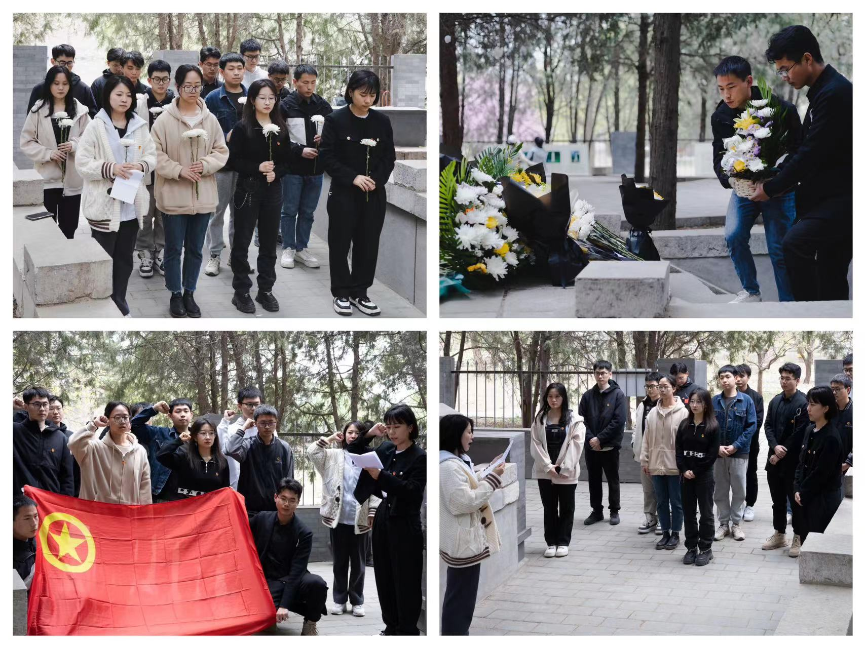 2022年4月3日,清明节前夕,为缅怀革命先烈不朽功绩,传承和弘扬革命烈士崇高精神,坚定青年团员理想信念,凝聚精神力量。qm球盟会网站团委师生代表到圆明园公园的“三·一八”烈士公墓开展祭扫活动。